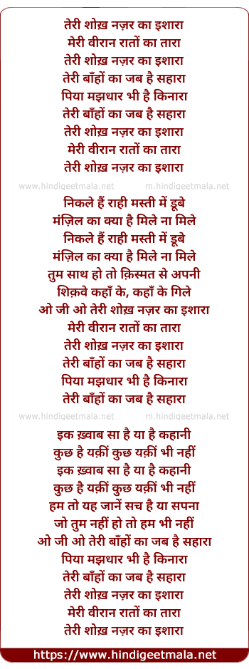 Lyrics of Teree Shokh Najar Kaa Ishaara - तेरी शोख़ नज़र का इशारा