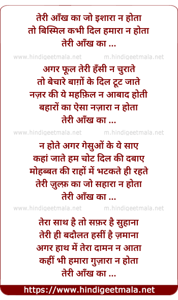 Lyrics of Teri Aankhn Ka Jo Ishara Na Hota - तेरी आँख का जो इशारा न होता