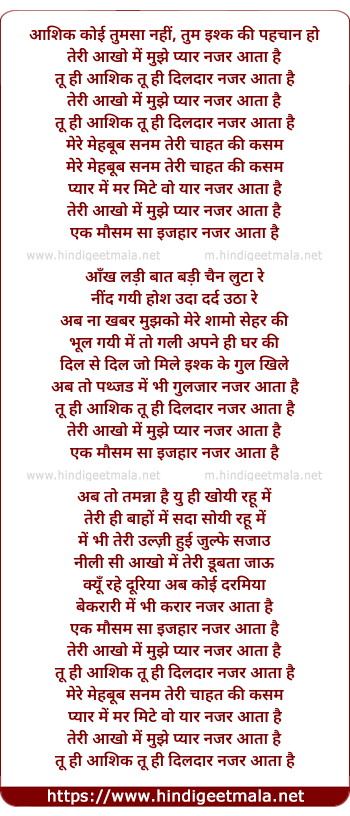 Lyrics of Teri Aankho Me Mujhe Pyar Najar Aata Hai - तेरी आँखों में मुझे प्यार नजर आता है