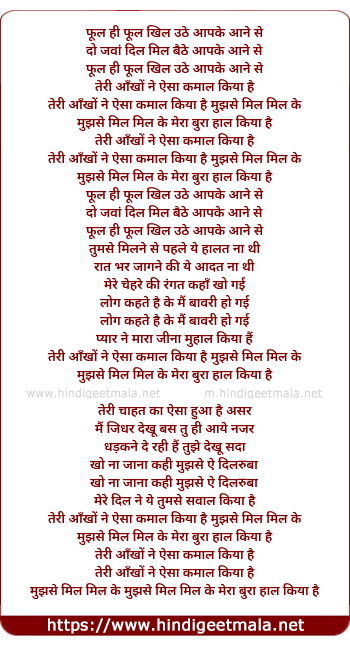 Lyrics of Teri Aankho Ne Aisa Kamal Kiya - तेरी आँखों ने ऐसा कमाल किया