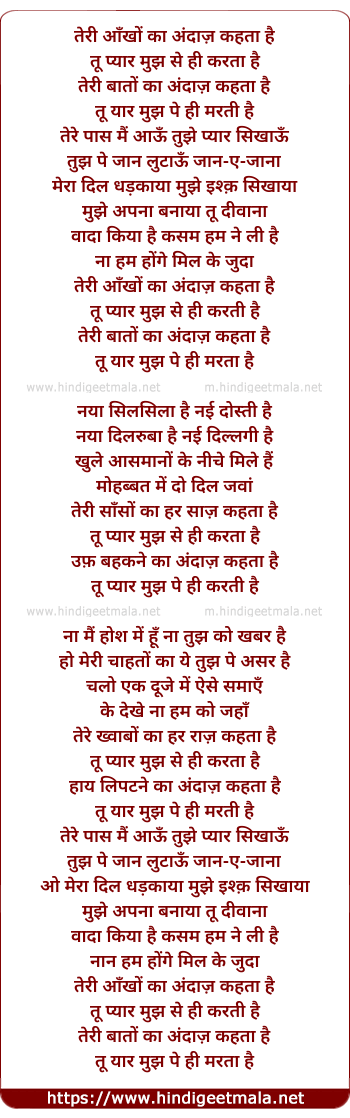 Lyrics of Teri Aankhon Ka Andaaz - तेरी आँखों का अंदाज़ कहता है