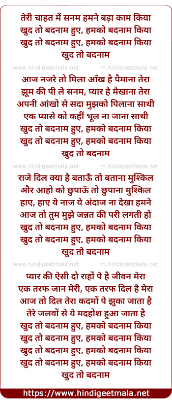 Lyrics of Teri Chahat Me Sanam Humne Bada Kaam Kiya - तेरी चाहत में सनम हमने बड़ा काम किया
