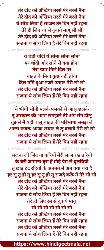 Lyrics of Teri Deed Ko Akhiyan Tarse (Karaoke Mix)