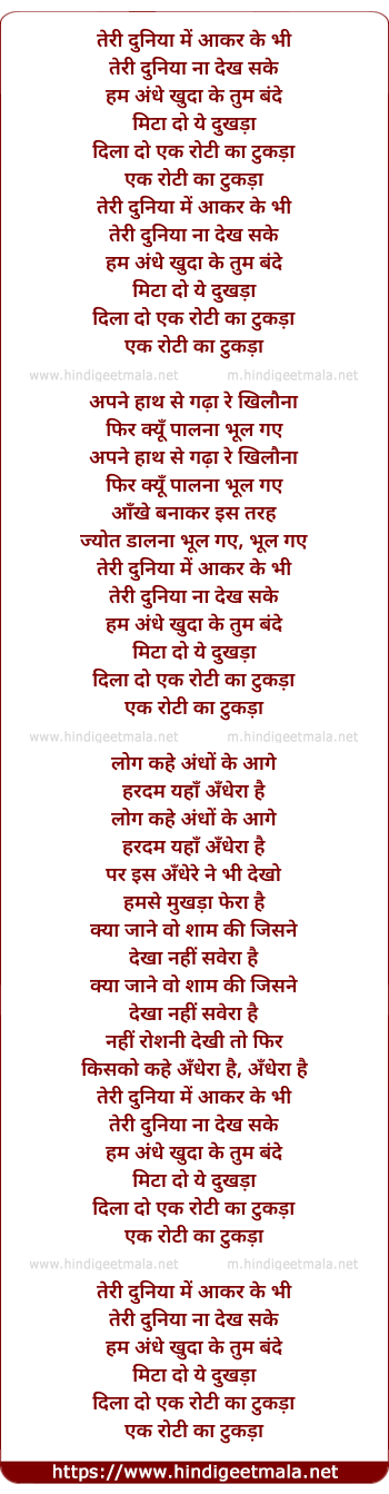 Lyrics of Teri Duniya Me Aakar Ke Bhi - तेरी दुनिया में आकर के भी