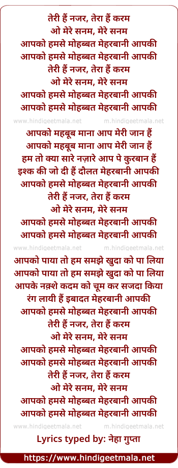 Lyrics of Teri Hai Nazar, Tera Hai Karam - तेरी हैं नजर, तेरा हैं करम