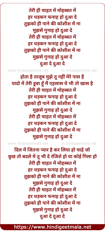 Lyrics of Teri Hi Chahat Mai Mohobbat Me ( (Dua De)) - तेरी ही चाहत में मोहब्बत में