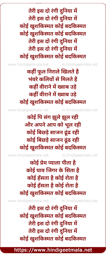 Lyrics of Teri Is Do Rangi Duniya Me - तेरी इस दो रंगी दुनिया में