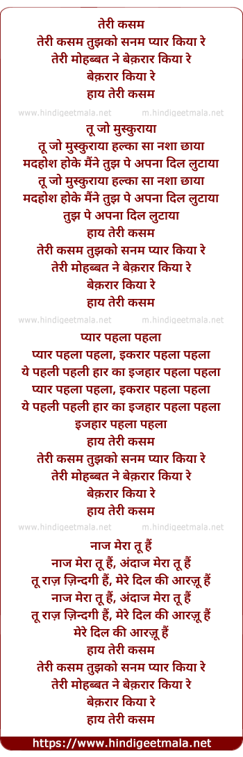 Lyrics of Teri Kasam Tujhko Sanam - तेरी कसम तुझको सनम