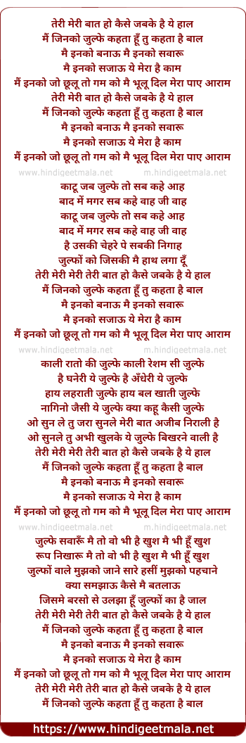 teri meri meri teri bat ho kaise jabke hai ye hal