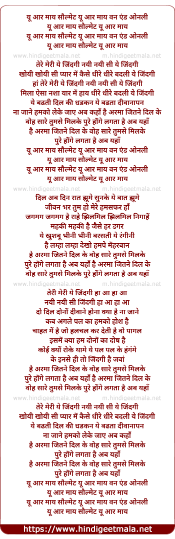 Lyrics of Teri Meri Ye Jindagi Nayi Nayi Si - तेरे मेरी ये जिंदगी नयी नयी सी