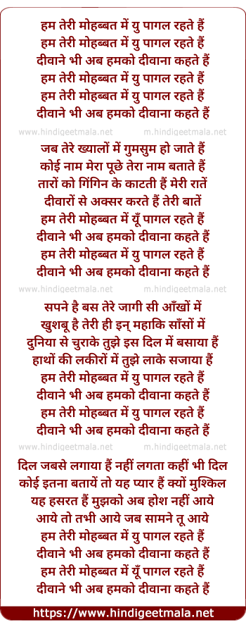 Lyrics of Teri Mohabbat Me Khud Ko Fanah Karu - तेरी मोहब्बत में खुद को फनाह करूँ