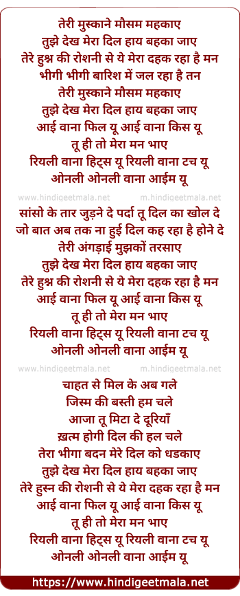 Lyrics of Teri Muskane Mausam Mahkaye - तेरी मुस्काने मौसम महकाये