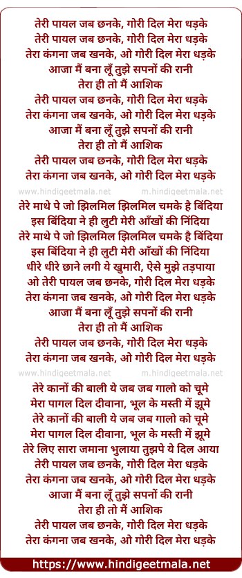 Lyrics of Teri Payal Jab Chhanke - तेरी पायल जब छनके, गोरी दिल मेरा धड़के