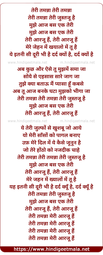 Lyrics of Teri Tamanna (Remix) - तेरी तमन्ना तेरी तमन्ना
