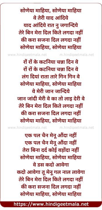 Teri Yaade - सोणेया माहिया, सोणेया माहिया