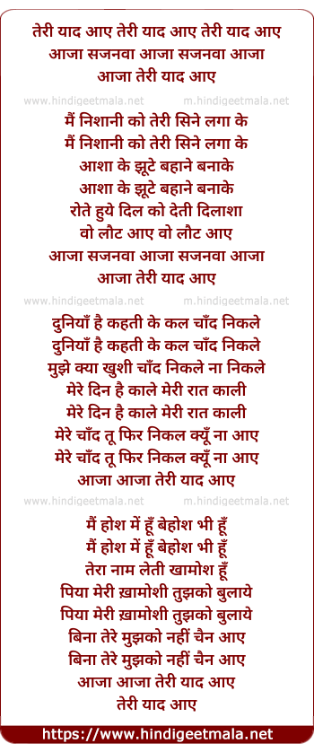 Teri Yaad Aaye Tu Aa Ja Sajanwa - तेरी याद आए तेरी याद आए तेरी याद आए