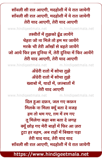 sanwali si raat aayegi, madhoshi me yeh raat jaayegi