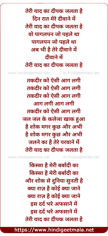 Lyrics of Teri Yaad Ka Deepak Jalta Hai (3) - तेरी याद का दीपक जलता है
