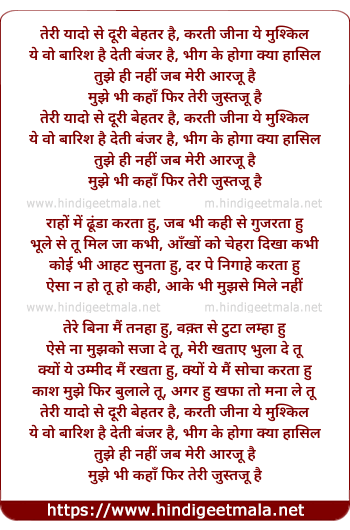 teri yado se doori behtar hai, karti jeena yeh mushkil