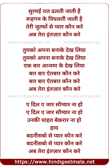 Lyrics of Ab Tera Intezar Kaun Kare - अब तेरा इंतज़ार कौन करे