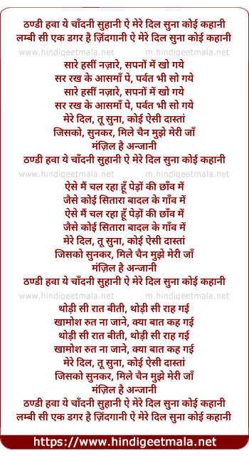 Lyrics of Thandi Havaa Ye Chandani Suhani - ठण्डी हवा ये चाँदनी सुहानी