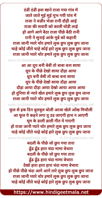 raajaa jaani pyare chor hamare luk chhup luk chhup jaana