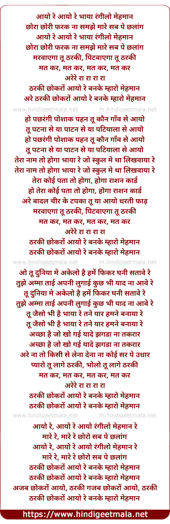 Lyrics of Tharki Chokro - ठरकी छोकरों
