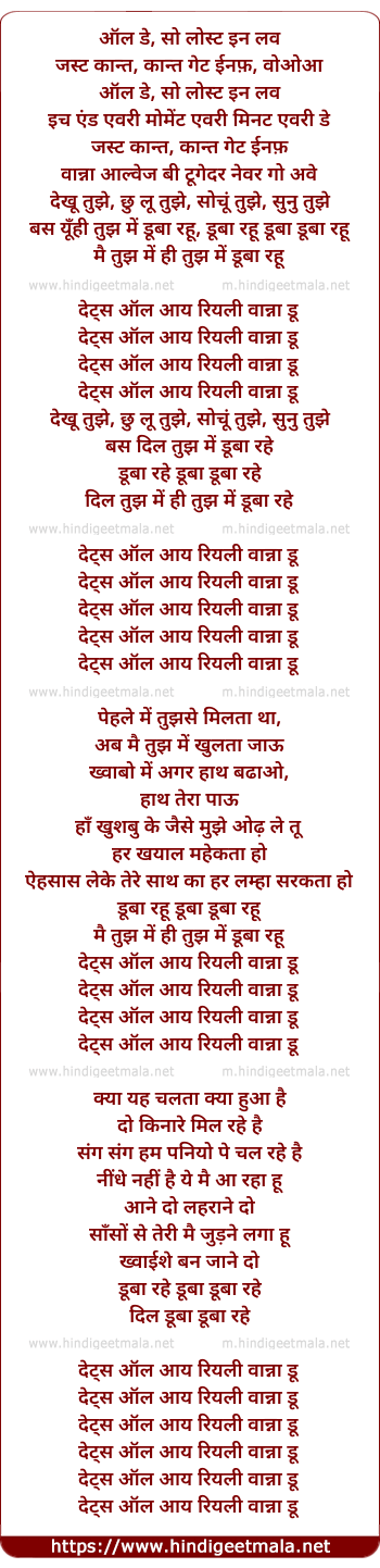 dooba dooba rahoon Main tujh mein hi tujh mein dooba rahoon That’s all I