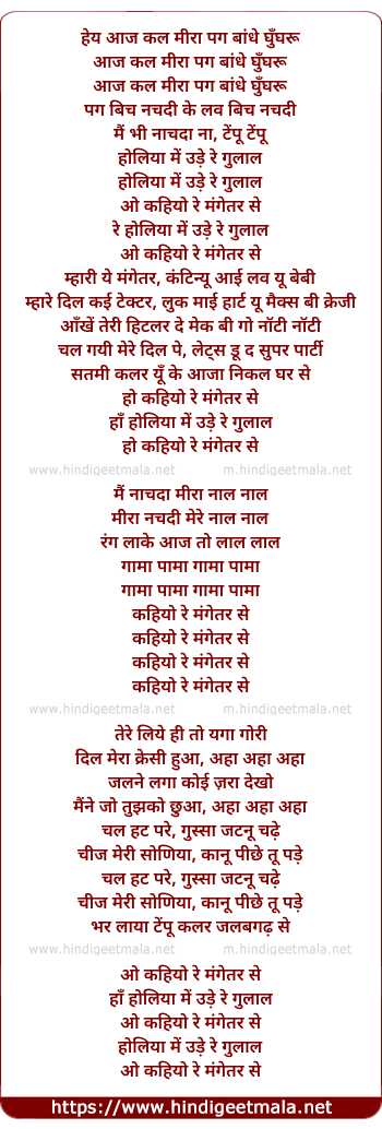 Lyrics of The Holi Waar - हेय आज कल मीरा पग बांधे घुँघरू