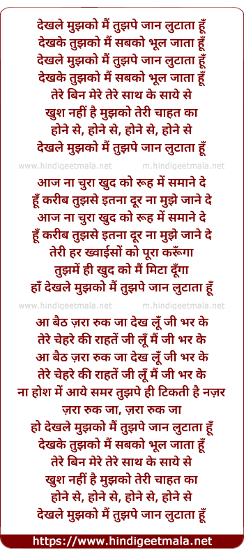 ho dekhle mujhko main tujhpe jaan lutata hun