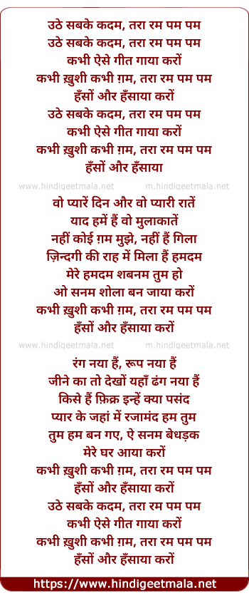 Poetic Translation - Lyrics of The Welcome (Rajesh Roshan) - उठे सबके कदम, तरा रम पम पम