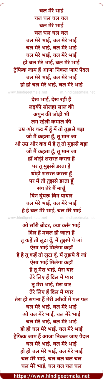 Lyrics of Theme Music (Chal Mere Bhai) - चल मेरे भाई