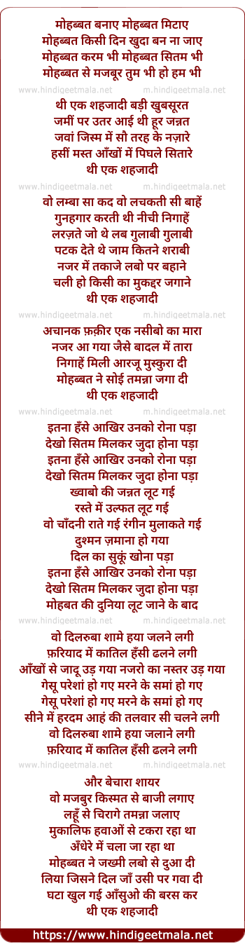 Lyrics of Thi Ek Shahzaadi - थी एक शहजादी