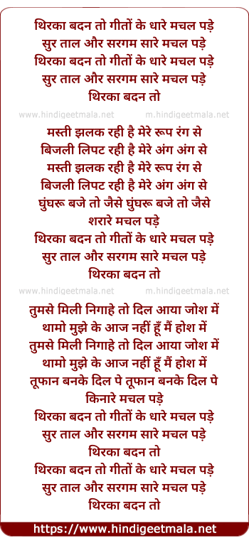 Lyrics of Thirka Badan To Geeto Ke - थिरका बदन तो गीतों के