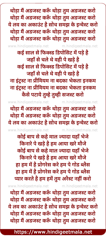 Lyrics of Thodaa Mai Adjust Karu - थोड़ा मैं अडजस्ट करूँ