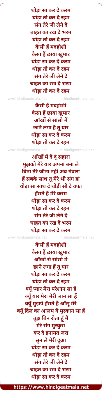 Lyrics of Thoda Sa Kar De Karam - थोड़ा सा कर दे करम