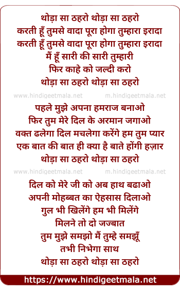 Lyrics of Thoda Sa Thero Karti Hu Tumse Vada - थोड़ा सा ठहरो करती हु तुमसे वादा