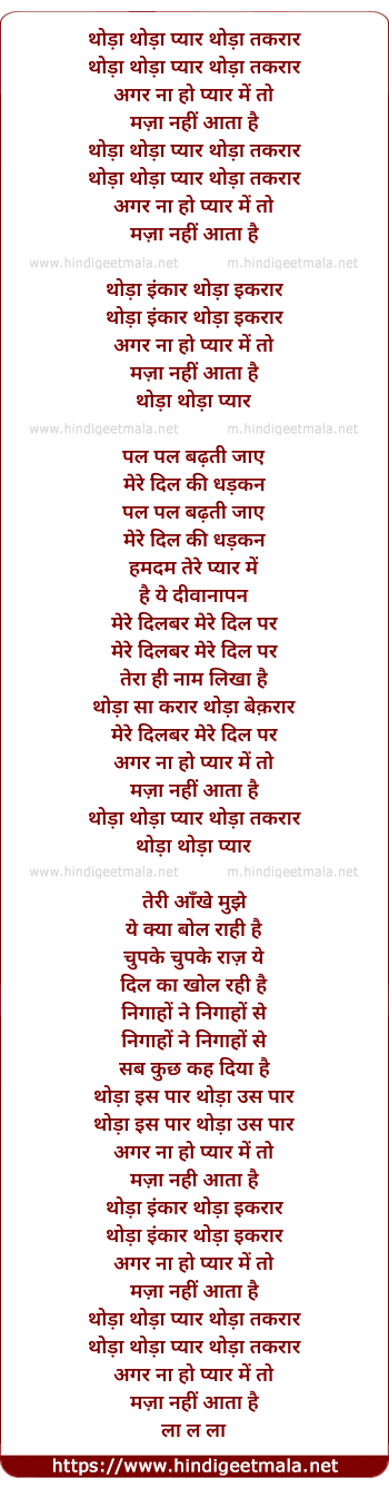 Lyrics of Thoda Thoda Pyaar - थोड़ा थोड़ा प्यार