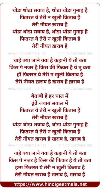 Lyrics of Thoda Thoda Sawaab Hai - थोड़ा थोड़ा सवाब है