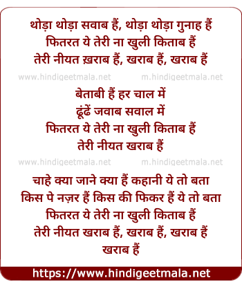 Lyrics of Thoda Thoda Sawaab Hai, Neeyat Kharaba Hai (Remix) - थोड़ा थोड़ा सवाब हैं, थोड़ा थोड़ा गुनाह हैं