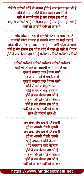 Lyrics of Thode Se Farishtay Thode Se Saitan - थोड़े से फ़रिश्ते थोड़े से शैतान