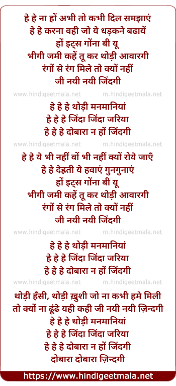 hey hey hey dobara na ho zindagi