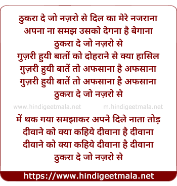 Lyrics of Thukra De Jo Nazaro Se - ठुकरा दे जो नज़रो से