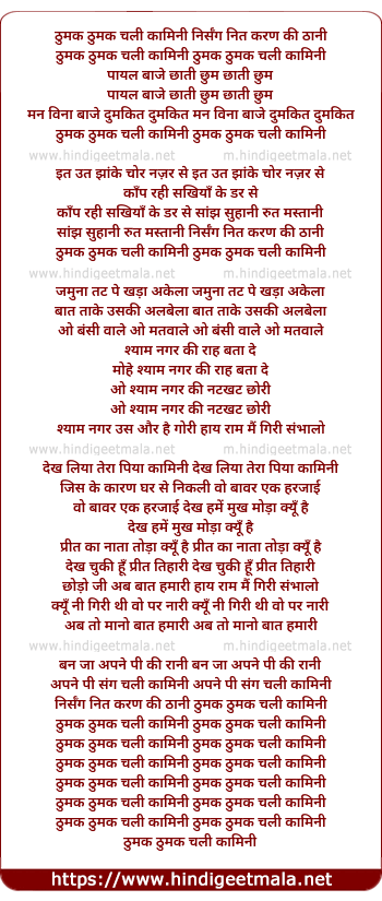 Lyrics of Thumak Thumak Chali Kamini - ठुमक ठुमक चली कामिनी