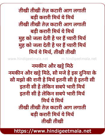 Poetic Translation - Lyrics of Tikhi Tikhi Mirch (Remix) - तीखी तीखी तेज़ कटारी आग लगाती
