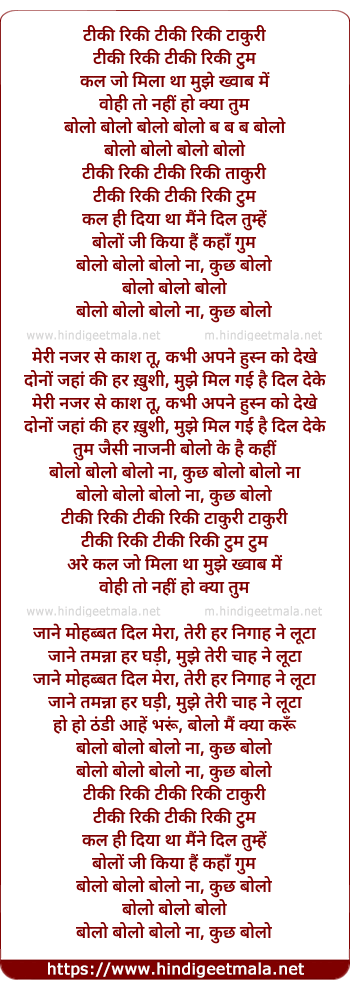 Lyrics of Tiki Riki Tiki Riki Takuri - टीकी रिकी टीकी रिकी टाकुरी