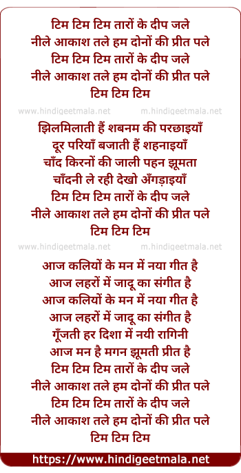 Lyrics of Tim Tim Tim Taaron Ke Dip Jale - टिम टिम टिम तारों के दीप जले