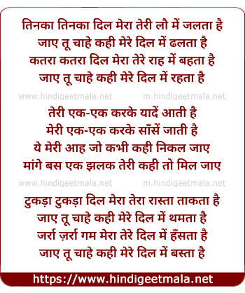 Lyrics of Tinka Tinka Dil Mera (Film Version) - तिनका तिनका दिल मेरा (फिल्म वर्शन)