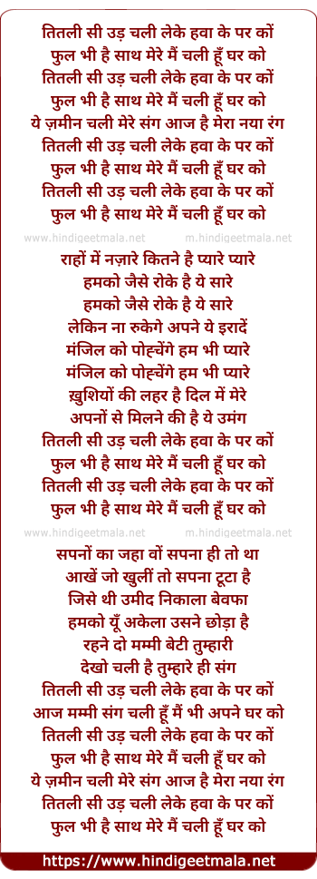 Lyrics of Titli Si Ud Chali - तितली सी उड़ चली