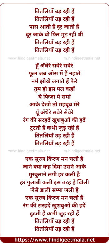 Lyrics of Titliya Udd Rahi Hai - तितलियाँ उड़ रही हैं